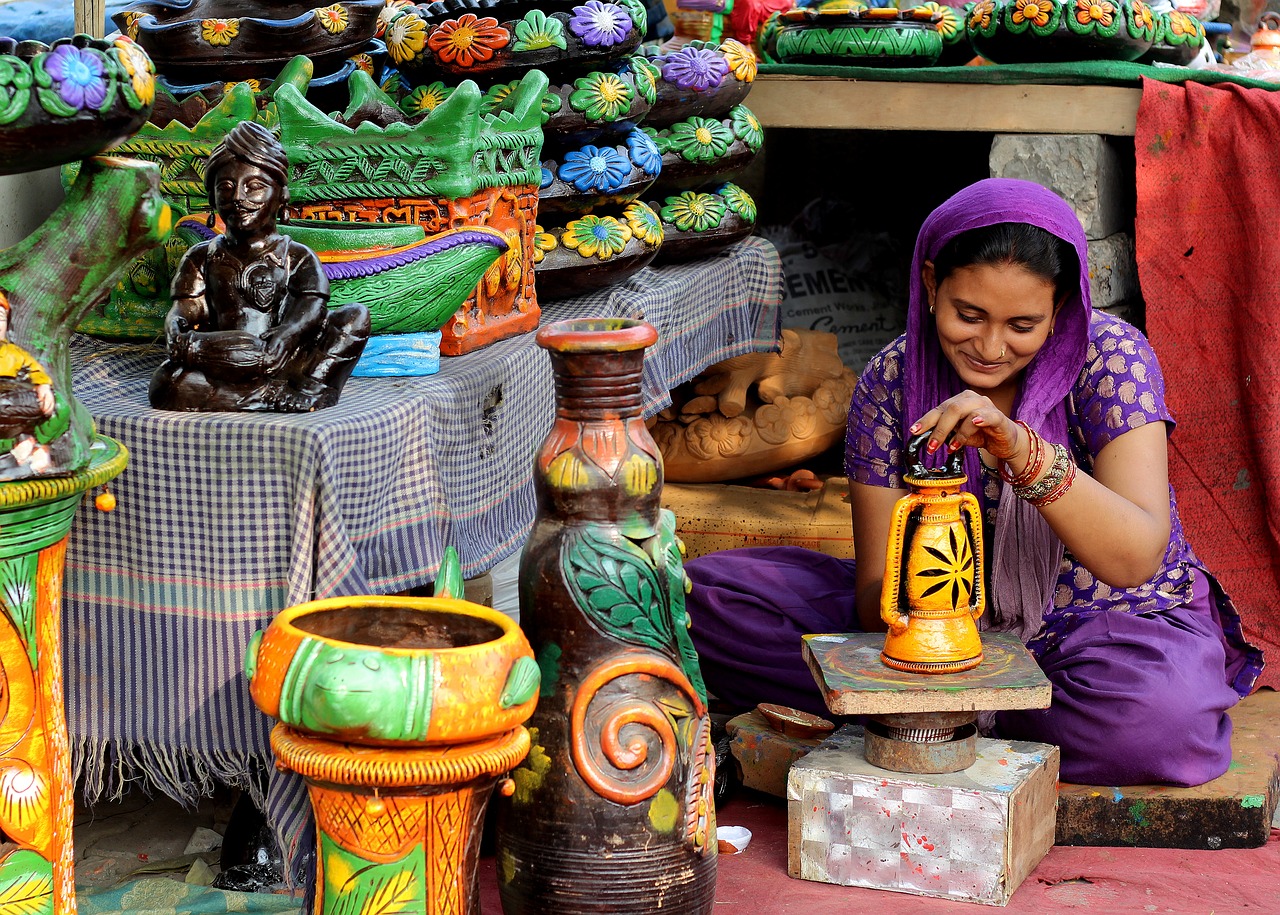 La India es un paraíso para las compras, debido a la gran variedad y riqueza de su artesanía. En Delhi se pueden encontrar objetos traídos de toda la India. Benarés está considerada como la capital de la seda y Jaipur es probablemente el mejor lugar para la adquisición de joyas, piedras preciosas, pinturas en miniatura, alfombras de lana y tejidos estampados.