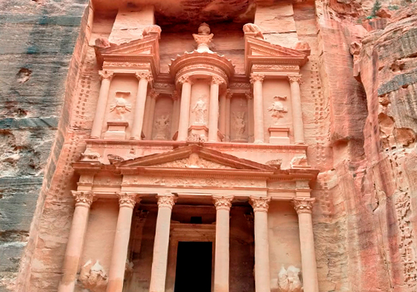 Desayuno. Día dedicado por completo a la visita de Petra, conocida como la “ciudad rosa”, donde hace más de 2.000 añoslos nabateos ubicaron la capital de su imperio a lo largo de 500 años, esculpiendo admirablestemplos y tumbas en las montañas rosadas y utilizando sistemas avanzados agrícolas y de conducción del agua. El recorrido comienza por la Tumba de los Obeliscos continuando por el Siq, cañón de más de 1 Km de longitud tras el cual se descubre el Tesoro, una tumba colosal decorada con columnas y esculturas de un refinamiento y una belleza incomparables. A continuación, hacia la calle de las fachadas y el teatro para acercarnos a los 850 escalones que nos llevarán hasta el imponente Monasterio “El Deir”. Regreso al hotel. Cena y alojamiento.
