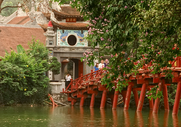 El Templo de la literatura, el edificio de La Ópera y el lago Hoan Kiem.