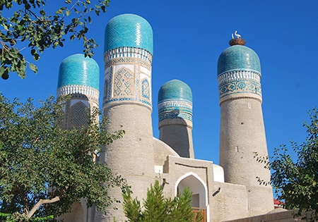 En la ciudadela Ark, la antigua residencia forticada de los khans de Bhukara, hay que ir a su patio pavimentado para ver el trono de mármol del emir y la sala de las Coronaciones. Frente a la ciudadela está el maravilloso complejo Bala-Khaouz y las veinte columnas pintadas de la mezquita coronadas por capiteles de estalagmitas.