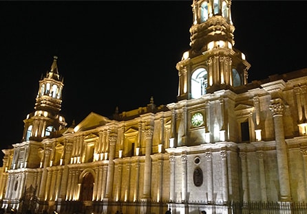 La “ciudad Blanca” está rodeada por el desierto y las altas montañas. Es una localidad de hermosos conventos, templos y casonas coloniales, declarada Patrimonio Cultural de la Humanidad por la UNESCO. A sólo 3 horas del impresionante Valle del Colca con hermosos paisajes de montañas nevadas y espectaculares volcanes, en especial el Misti y el Picchu Picchu, y pueblos pintorescos.